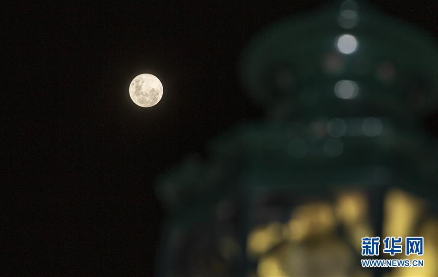這是5月7日晚在澳大利亞悉尼拍攝的“超級月亮”?!俺壴铝痢敝傅氖窃铝廖挥诮攸c時剛好出現(xiàn)滿月。新華社記者白雪飛攝