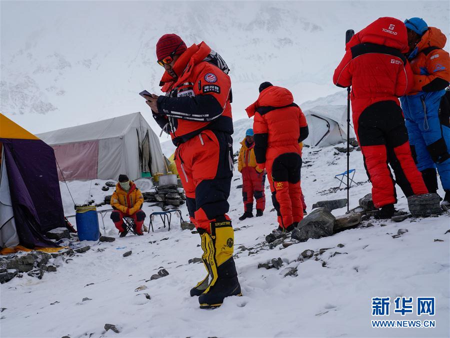 5月7日,2020珠峰高程測(cè)量登山隊(duì)進(jìn)駐海拔6500米的前進(jìn)營地。新華社特約記者扎西次仁攝