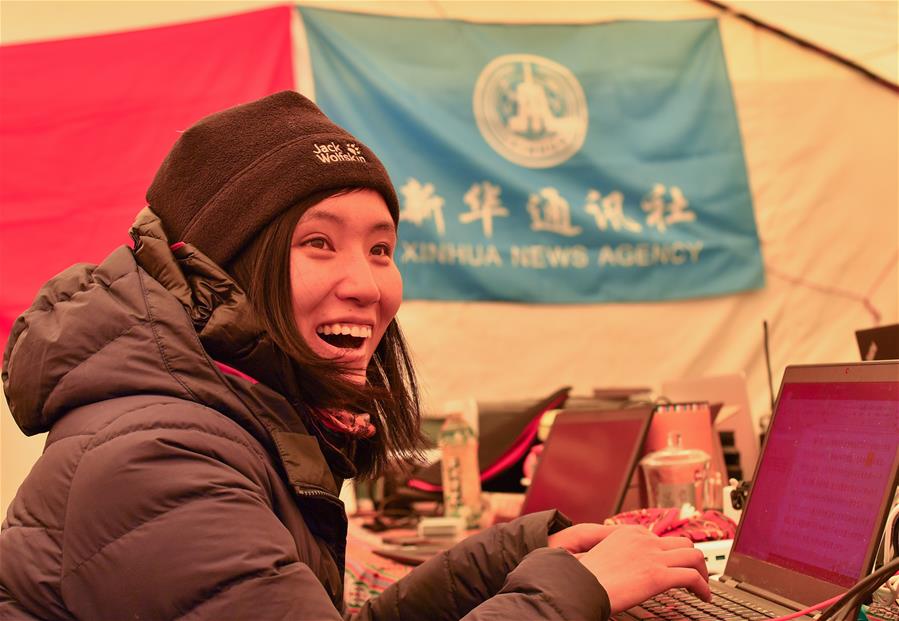 新華社記者王沁鷗在珠峰大本營(5月8日攝)。5月8日是世界微笑日。在海拔5200米的珠峰大本營,參與2020珠峰高程測量的各方人員,微笑期待本次測量活動(dòng)的圓滿成功。
