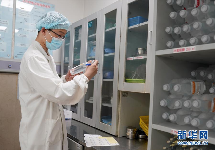 5月10日,在上海市普陀區(qū)中心醫(yī)院急診室,護(hù)士蔡杰君在準(zhǔn)備藥品。他曾在浦東國際機(jī)場“外防輸入”抗疫一線堅(jiān)守30天。新華社記者劉穎攝