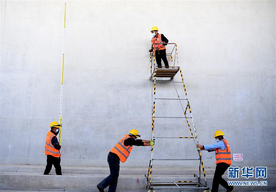 5月10日,中鐵電氣化局工程人員在鄭州新鄭機場至鄭州南站城際鐵路工地施工。新華社記者郝源攝