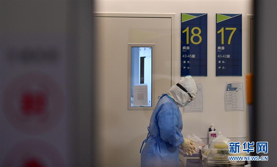 5月11日,在空港醫(yī)院隔離病房,身處“紅區(qū)”的護(hù)士準(zhǔn)備給處在醫(yī)學(xué)觀察的人員送飯。新華社記者李然攝
