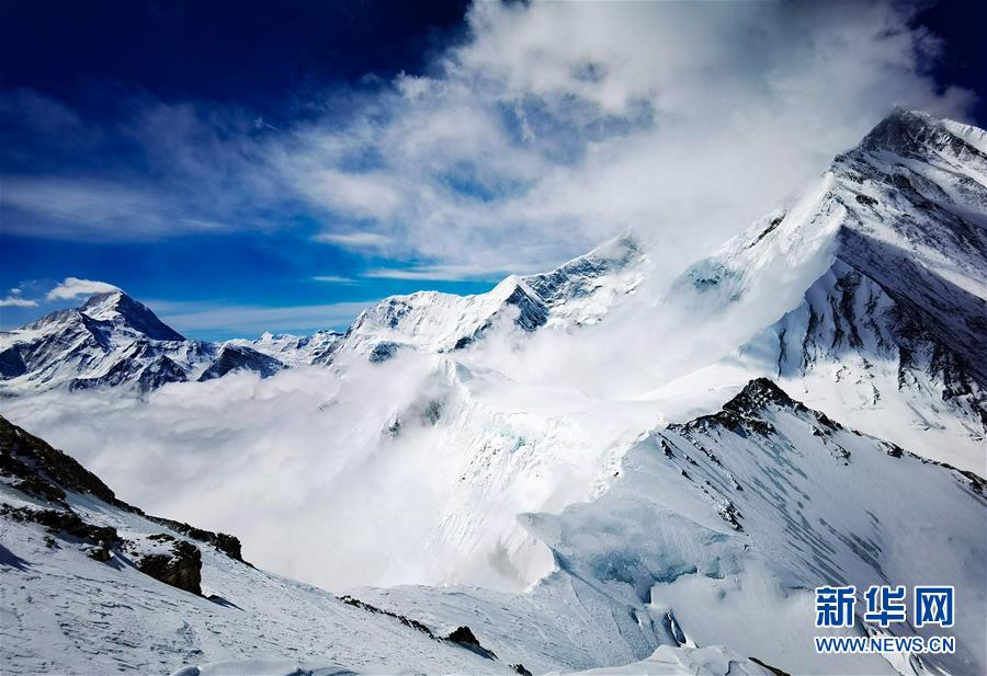 從珠峰海拔7028米以上拍攝的壯美景色(5月12日攝)。從珠峰海拔7028米的一號營地繼續(xù)向上攀登,沿途景色十分壯美。新華社特約記者扎西次仁攝