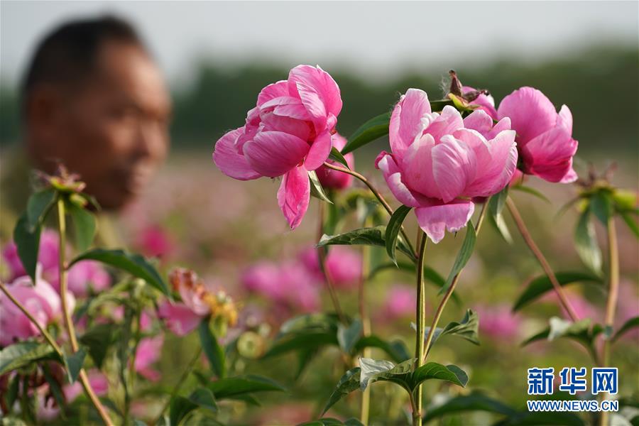 工作人員在金湖縣金燦芍藥園里進(jìn)行農(nóng)業(yè)管理(5月11日攝)。新華社記者韓瑜慶攝
