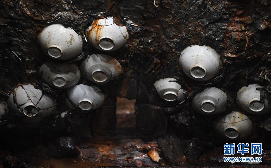 這是在廣東陽江海陵島拍攝的“南海I號(hào)”船體上嵌入的瓷器(5月12日攝)。新華社記者鄧華攝
