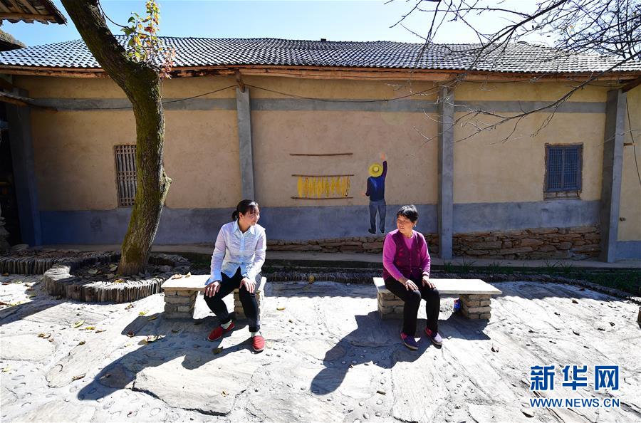 在安康市漢濱區(qū)茨溝鎮(zhèn)西溝村,村民在改造后的房屋院子內(nèi)活動(dòng)(2018年10月29日攝)。新華社記者邵瑞攝