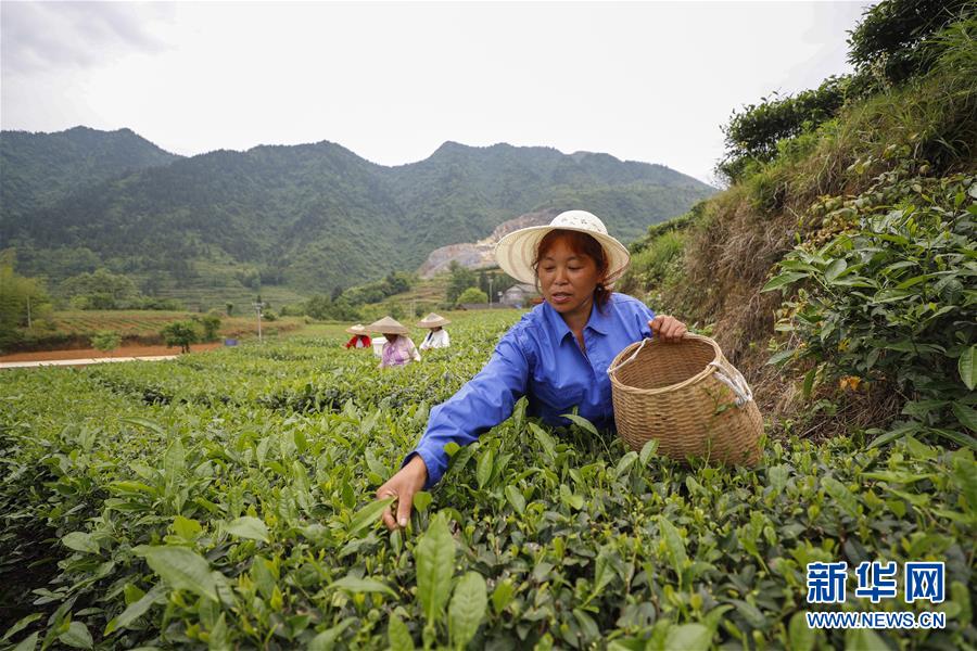 5月17日,村民在新院村茶葉基地采摘夏茶。新華社發(fā)(黃偉攝)