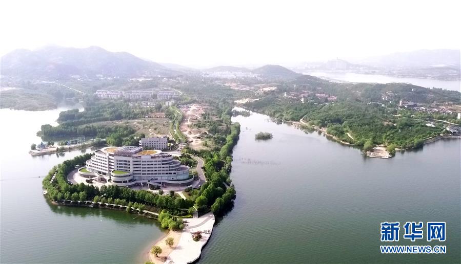 這是5月17日拍攝的雪野湖景色(無人機(jī)照片)。山東濟(jì)南風(fēng)景區(qū)——雪野湖波光粼粼,岸邊綠樹環(huán)抱,加上星星點(diǎn)點(diǎn)的帆船在湖面搖曳,景色宜人。新華社記者王凱攝
