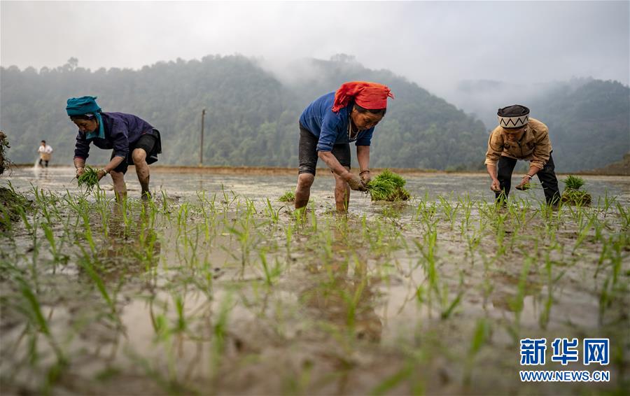 村民王九才在村里統(tǒng)一修建的雞舍里喂雞(3月28日攝)。新華社記者江文耀攝