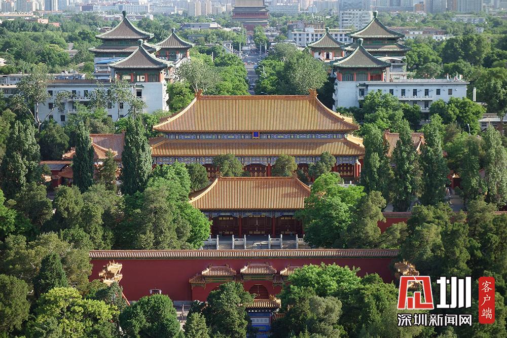 2020年5月18日,北京,天氣晴好碧空萬里,游客在景山公園登高遠(yuǎn)望,北京城壯美景觀盡收眼底。