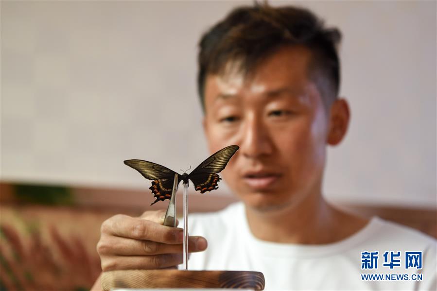 在吉木薩爾縣七彩蝶園,關(guān)富云在制作蝴蝶標(biāo)本(5月15日攝)。走進(jìn)關(guān)富云的七彩蝶園,游客不僅可以近距離接觸翩翩起舞的蝴蝶,還可以欣賞蝴蝶破繭成蝶的蛻變過(guò)程。今年34歲的關(guān)富云用9年的時(shí)間實(shí)現(xiàn)了自己的“蝴蝶夢(mèng)”,完成美麗的“蝶變”。關(guān)富云家住新疆吉木薩爾縣北地社區(qū)。2011年,他看到一檔農(nóng)業(yè)致富節(jié)目,萌生了養(yǎng)殖蝴蝶的想法。關(guān)富云說(shuō),當(dāng)時(shí)蝴蝶養(yǎng)殖還是一種新興產(chǎn)業(yè),他抱著試一試的想法,在海南學(xué)習(xí)了3個(gè)月蝴蝶養(yǎng)殖,帶回100多個(gè)蝶蛹在家試驗(yàn)養(yǎng)殖。蝴蝶的生存周期短,在當(dāng)?shù)仞B(yǎng)殖需要克服溫度、濕度、病蟲(chóng)害等問(wèn)題。關(guān)富云不斷嘗試,越挫越勇,羽化成功的蝴蝶在2014年終于突破了萬(wàn)只。蝴蝶的色彩艷麗,活體蝴蝶可用于婚慶、開(kāi)業(yè)慶典等活動(dòng)中放飛,可以取得很好的收益。但它的生命短暫,如何才能最大化蝴蝶的效益,留住它的美呢?關(guān)富云動(dòng)起了心思,開(kāi)始嘗試制作標(biāo)本和蝶翅畫(huà)。“和養(yǎng)殖不同,做蝶翅畫(huà)是個(gè)創(chuàng)作的過(guò)程,從選擇標(biāo)本到粘貼,每一步都要突出美感?!标P(guān)富云介紹,一幅色彩明艷、栩栩如生的蝶翅畫(huà)耗時(shí)多日才能完成。如今,關(guān)富云的活體蝴蝶和蝶翅畫(huà)通過(guò)線上線下銷售,產(chǎn)品還銷往北京、廈門等地。關(guān)富云的蝴蝶產(chǎn)品得到市場(chǎng)的認(rèn)可,政府也對(duì)他給予大力支持。2019年,吉木薩爾縣在泉子街鎮(zhèn)建起蝴蝶觀賞園,吸引了不少游客到此參觀游玩。對(duì)于未來(lái)的發(fā)展,關(guān)富云信心滿滿,“我希望把蝴蝶產(chǎn)業(yè)發(fā)展到天山南北,讓人們?cè)诤涞亩疽材苡^賞到蝴蝶,并且讓更多人參與其中,致富脫貧”。新華社記者丁磊攝