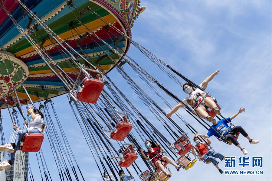 5月19日,游客在武漢歡樂谷內(nèi)游玩。當(dāng)日,湖北武漢歡樂谷重新開放。園區(qū)執(zhí)行客流量管控,游客需通過網(wǎng)上預(yù)約才能進(jìn)入,室內(nèi)場(chǎng)館暫不開放。新華社記者熊琦攝