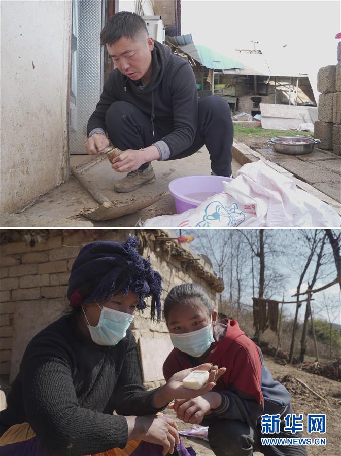 拼版照片上圖:在四川省涼山彝族自治州美姑縣瓦古鄉(xiāng),彭?xiàng)钤谙魍炼蛊?,?zhǔn)備制作土豆手工皂(3月10日,新華社記者吳光于攝);下圖:在瓦古鄉(xiāng),15歲的沙馬也曲(右)和她的媽媽拿到了彭?xiàng)钪谱鞯耐炼故止ぴ恚?月10日,新華社記者薛晨攝)。四川省涼山彝族自治州美姑縣瓦古鄉(xiāng)扶貧干部彭?xiàng)钏诘墓庞X村距鄉(xiāng)政府20公里,是美姑縣80個尚未脫貧村之一。他深知養(yǎng)成好的生活習(xí)慣,對當(dāng)?shù)孛撠氈陵P(guān)重要,所以他不僅督促老百姓疊被子、整理房間,幫當(dāng)?shù)氐暮⒆觽兿搭^、洗澡,還在疫情期間自制土豆手工皂分發(fā)給村民。彭?xiàng)钫f,疫情后準(zhǔn)備發(fā)動留守婦女生產(chǎn)手工皂,計(jì)劃在1年內(nèi)建成一個吸納瓦古鄉(xiāng)4個村村民的手工皂合作社。黨的十八大以來,我們堅(jiān)持以人民為中心的發(fā)展思想,明確了到2020年我國現(xiàn)行標(biāo)準(zhǔn)下農(nóng)村貧困人口實(shí)現(xiàn)脫貧、貧困縣全部摘帽、解決區(qū)域性整體貧困的目標(biāo)任務(wù)。目前看,脫貧進(jìn)度符合預(yù)期,成就舉世矚目。這些成績的取得,凝聚了全黨全國各族人民智慧和心血,是廣大干部群眾扎扎實(shí)實(shí)干出來的。脫貧摘帽不是終點(diǎn),而是新生活、新奮斗的起點(diǎn)。新華社發(fā)