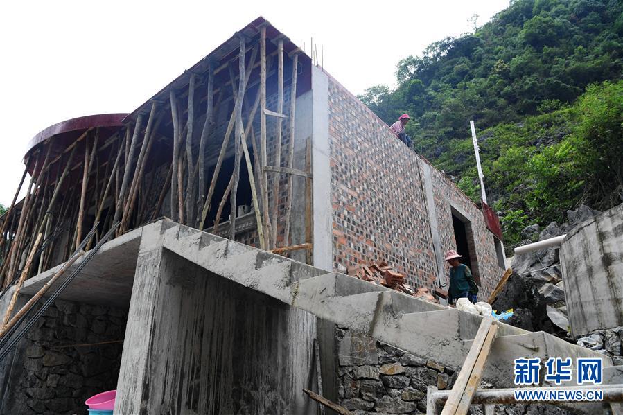 大化瑤族自治縣弄合村弄根屯群眾在建新房(5月13日攝,無(wú)人機(jī)照片)。新華社記者周華攝