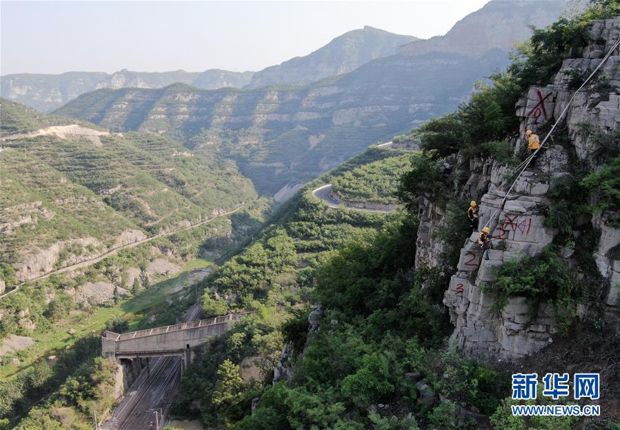 在太行山深處的中國鐵路鄭州局集團(tuán)有限公司月山工務(wù)段,有一群被稱為捅山工的人。每年汛期來臨前,他們要對山體進(jìn)行檢查、清理,在懸崖峭壁間“行走”,揮動著手中的鋼釬,排除威脅鐵路行車安全的危石。