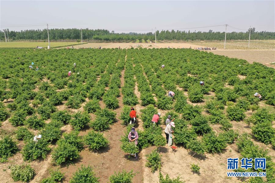 5月21日,河北省清河縣農(nóng)墾金銀花種植專業(yè)合作社社員在采收金銀花(無人機(jī)照片)。2017年以來,河北省清河縣在推進(jìn)農(nóng)業(yè)產(chǎn)業(yè)結(jié)構(gòu)調(diào)整過程中,結(jié)合市場需求,立足當(dāng)?shù)赝寥?、氣候特點,依托公司“訂單”引導(dǎo)農(nóng)民發(fā)展金銀花種植。目前,清河縣金銀花種植面積近2000畝,帶動40多個村莊的2000余名農(nóng)民人均增收千元以上。新華社記者牟宇攝