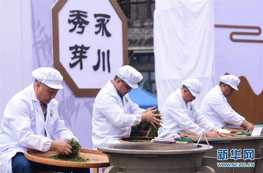 5月22日,炒茶師在斗茶大會(huì)上表演制茶。當(dāng)日,2020永川秀芽第四屆斗茶大會(huì)在重慶市永川區(qū)舉行,22家從事茶葉生產(chǎn)加工的企業(yè)參加大會(huì)。近年來(lái),永川區(qū)把茶葉產(chǎn)業(yè)確立為農(nóng)業(yè)特色產(chǎn)業(yè)大力扶持,2019年全區(qū)茶葉種植面積近10萬(wàn)畝。新華社記者 王全超 攝