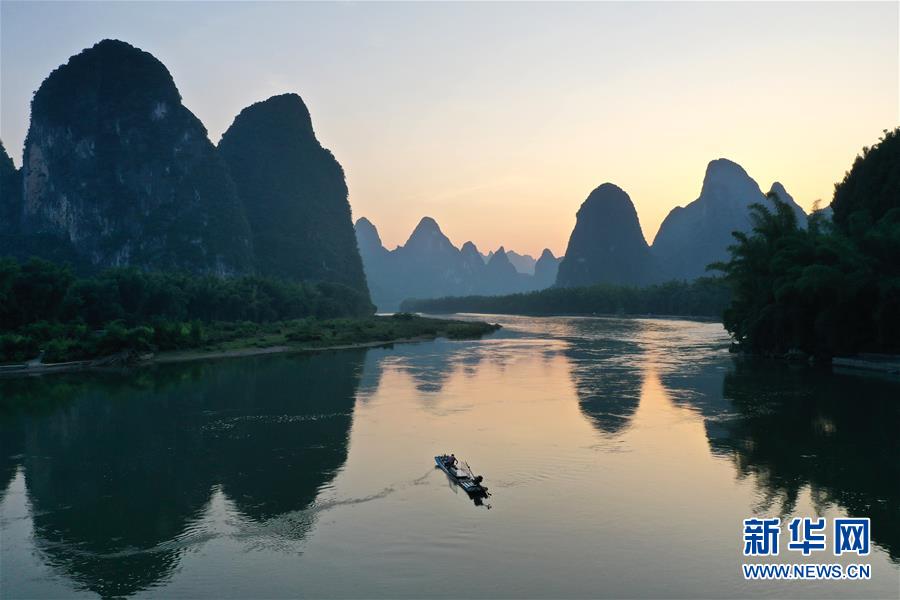 這是在廣西桂林市陽朔縣興坪鎮(zhèn)拍攝的山水風(fēng)光(5月19日攝)?!吧n蒼森八桂,茲地在湘南。江作青羅帶,山如碧玉篸……”一千多年前,唐朝詩人韓愈寫盡桂林山水之美。初夏時(shí)節(jié),在廣西桂林市陽朔縣興坪鎮(zhèn),藍(lán)天白云下,煙雨朦朧中,桂林山水盡顯秀美。新華社記者 崔博文 攝