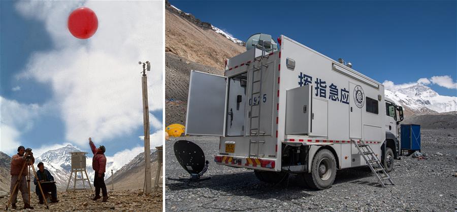 拼版照片:左圖為1975年6月9日,我國氣象工作者在珠穆朗瑪峰腳下的高山氣象站收集氣象資料。新華社記者程至善攝右圖為2020年5月25日拍攝的珠峰大本營氣象應(yīng)急保障車,西藏自治區(qū)氣象局氣象專家在這里與后方氣象專家進行天氣會商。新華社記者普布扎西攝