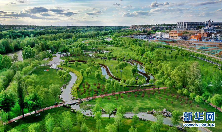 5月24日拍攝的榆林市榆溪河生態(tài)長(zhǎng)廊(無人機(jī)照片)。新華社記者陶明攝