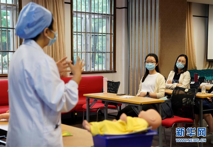 5月26日,孕婦們?cè)谥袊?guó)福利會(huì)國(guó)際和平婦幼保健院健康教育科孕婦學(xué)校上課。