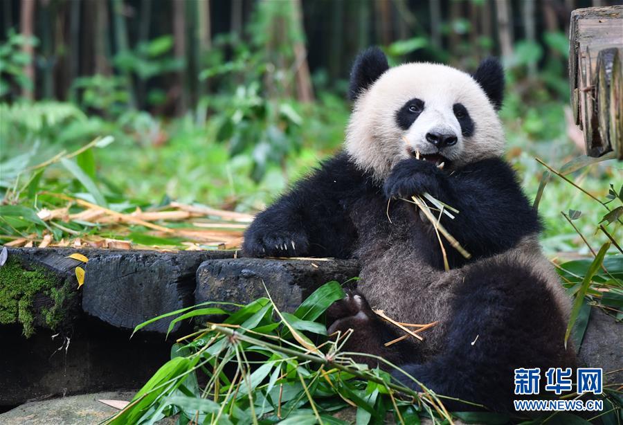 5月27日,大熊貓婷仔在享受竹子大餐。正在享受竹子大餐的廣州長(zhǎng)隆野生動(dòng)物世界大熊貓婷仔被大熊貓隆仔搶食,兩只大熊貓上演一場(chǎng)爭(zhēng)食戲碼。新華社記者劉大偉攝