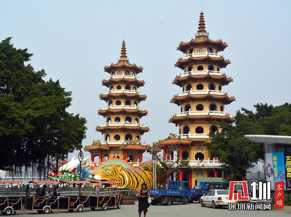 2014年3月18日,臺灣蓮池潭原名連花潭,位于高雄市左營區(qū)的東側(cè),南鄰龜山、北接半屏山,潭長1.4公里、寬約400公尺,潭面面積約42公頃。<br>池潭西岸廟宇林立,五百公尺內(nèi)擁有二十馀座寺廟,由北而南分別有孔子廟、北極玄天上帝、啟明堂、春秋閣、五里亭、龍虎塔等,為高雄有名的寺廟觀光景點。