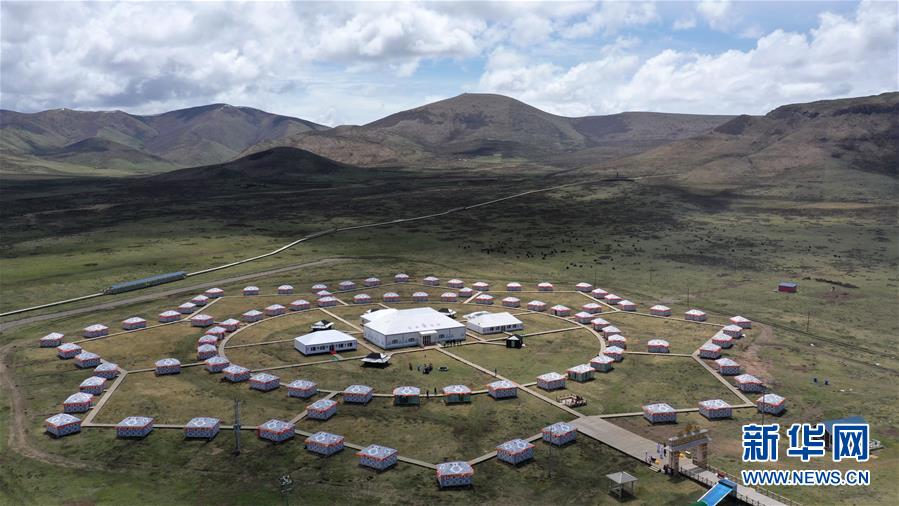 這是5月25日拍攝的甘南藏族自治州碌曲縣尕海鎮(zhèn)尕秀村帳篷城景區(qū)(無人機照片)。新華社記者陳斌攝