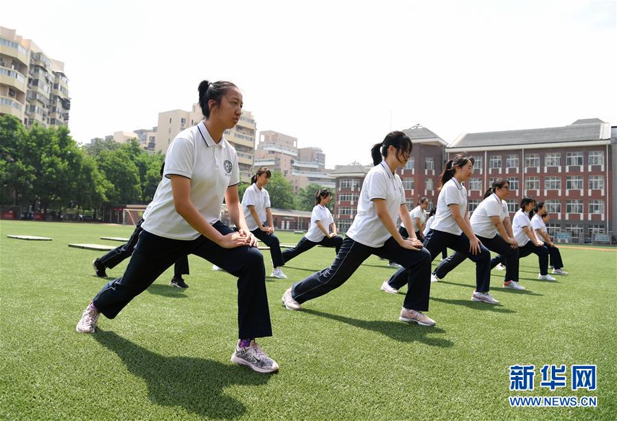 5月28日,北京市第十八中學(xué)初三年級(jí)的學(xué)生在體育課上做準(zhǔn)備活動(dòng)。北京市第十八中學(xué)共有初三年級(jí)學(xué)生340余名,學(xué)校在做好初三年級(jí)學(xué)生中考文化課備考的同時(shí),加強(qiáng)學(xué)生心理及身體素質(zhì)的鍛煉,以最好的精神狀態(tài)備戰(zhàn)中考。據(jù)悉,2020年北京中考報(bào)名人數(shù)為7.5萬(wàn)人,比去年增加25%。新華社記者任超攝