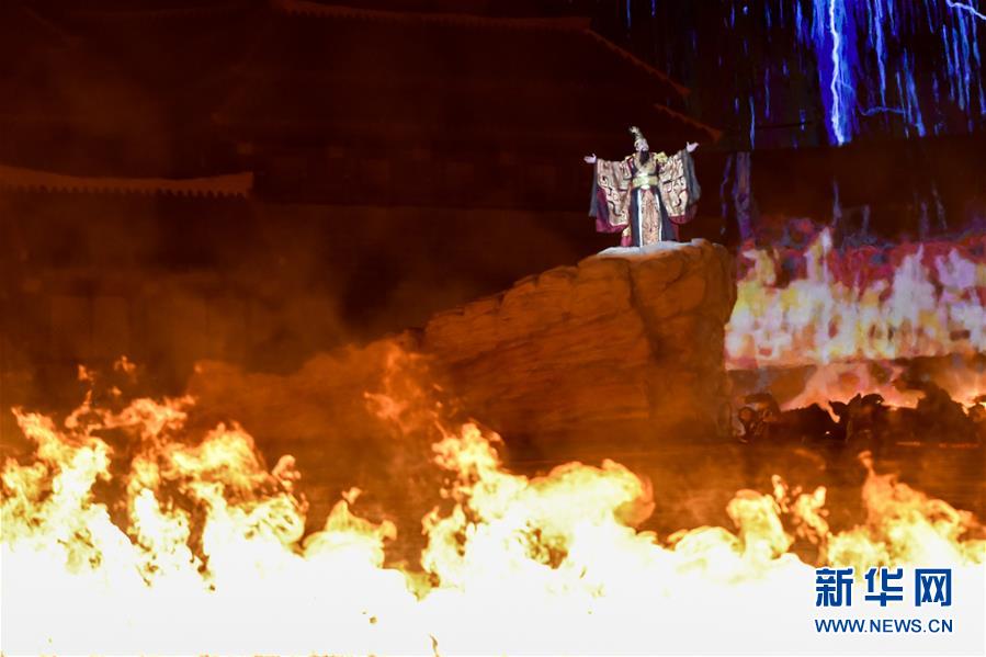 5月28日,演員在大型實(shí)景神話音樂劇《昆侖之約》中表演。5月28日,新疆文化旅游新名片——大型實(shí)景神話音樂劇《昆侖之約》在烏魯木齊南山景區(qū)上演。該劇融自然山水之美、藝術(shù)文化之光、現(xiàn)代科技之新于一體,為市民獻(xiàn)上一場(chǎng)視聽盛宴。新華社記者丁磊攝