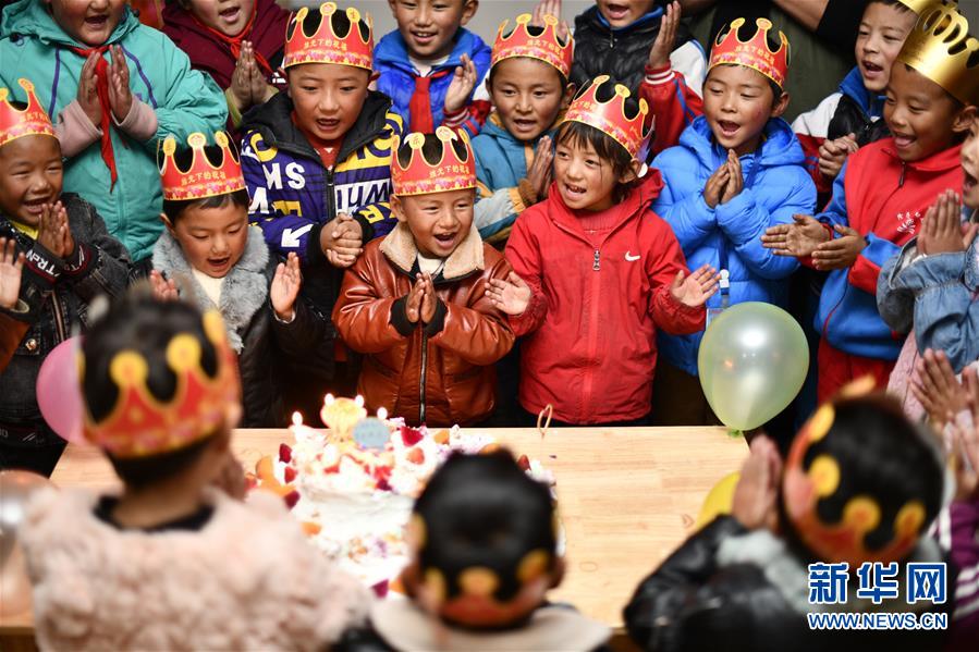5月27日,玉麥鄉(xiāng)小學的孩子們一起唱生日歌。新華社記者王炳坤攝