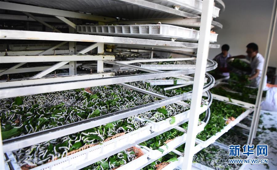 5月29日,奉節(jié)縣新民鎮(zhèn)中嶺村蠶桑產(chǎn)業(yè)扶貧基地工作人員在智能化小蠶共育室內(nèi)作業(yè)。新華社記者 王全超 攝