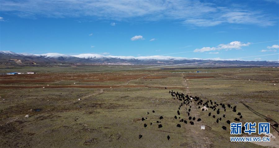 這是5月29日在四川省甘孜藏族自治州理塘縣奔戈鄉(xiāng)卡灰村拍攝的集體農(nóng)場(無人機照片)。四川省甘孜藏族自治州理塘縣地處青藏高原東部,縣城海拔約4000米,有“天空之城”的美譽。時值初夏,理塘的天空碧藍如洗,巍峨的雪山環(huán)繞四周,牦牛星星點點散落于曠野之上,構成一幅高原特有的壯美圖景。新華社記者李夢馨攝