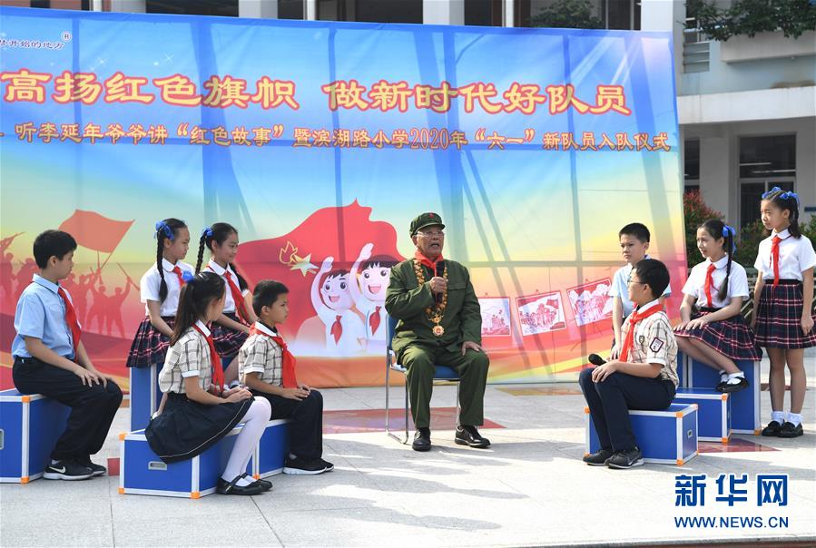 5月29日,李延年給孩子們講述紅色故事?!傲弧眹H兒童節(jié)來臨之際,“共和國勛章”獲得者、老一輩戰(zhàn)斗英雄李延年來到廣西南寧市濱湖路小學給孩子們講述戰(zhàn)爭年代的紅色故事,寄語他們好好學習、努力奮斗。孩子們向李延年贈送了師生共繪的“紅色畫卷”,向老英雄致敬。新華社記者周華攝