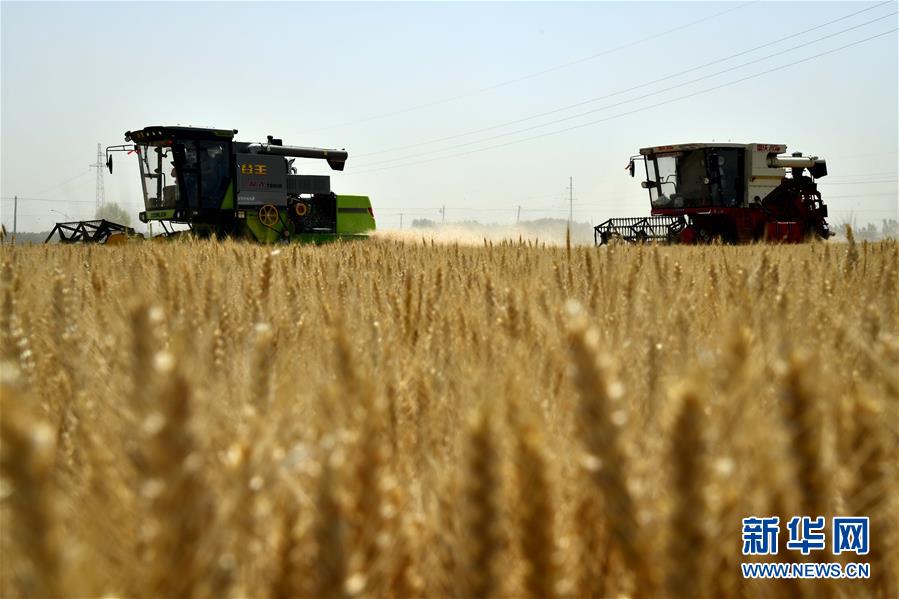 6月3日,收割機(jī)在汶上縣郭倉(cāng)鎮(zhèn)的麥田里收獲小麥。目前,我國(guó)第二大小麥主產(chǎn)區(qū)山東6000多萬(wàn)畝小麥進(jìn)入收獲階段。農(nóng)民們搶抓有利天氣,自南向北陸續(xù)開(kāi)鐮。新華社記者郭緒雷攝。