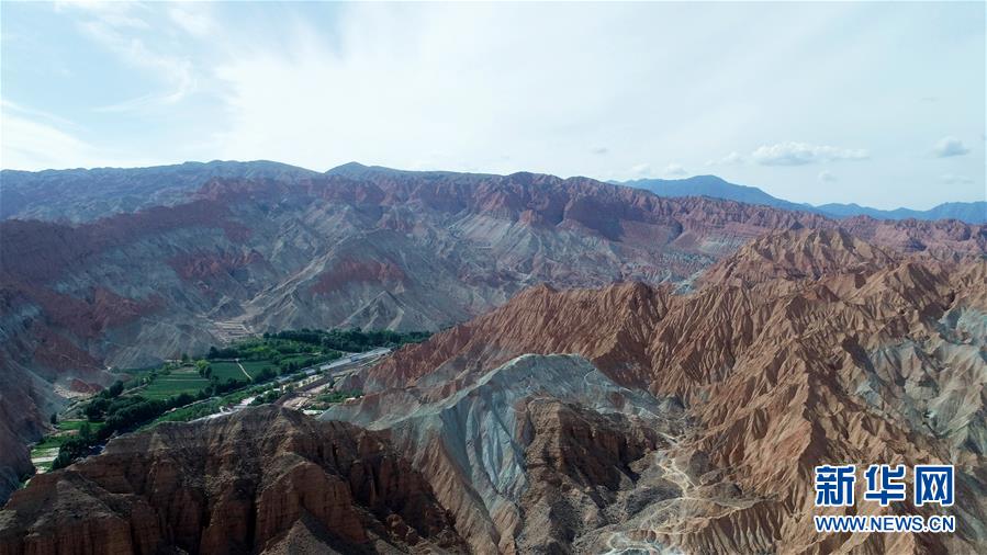 這是6月5日拍攝的位于青海省海南藏族自治州貴德縣境內(nèi)的丹霞地貌(無(wú)人機(jī)照片)。在青海省海南藏族自治州貴德縣境內(nèi),色彩斑斕的丹霞地貌美如畫卷。新華社記者趙玉和攝。
