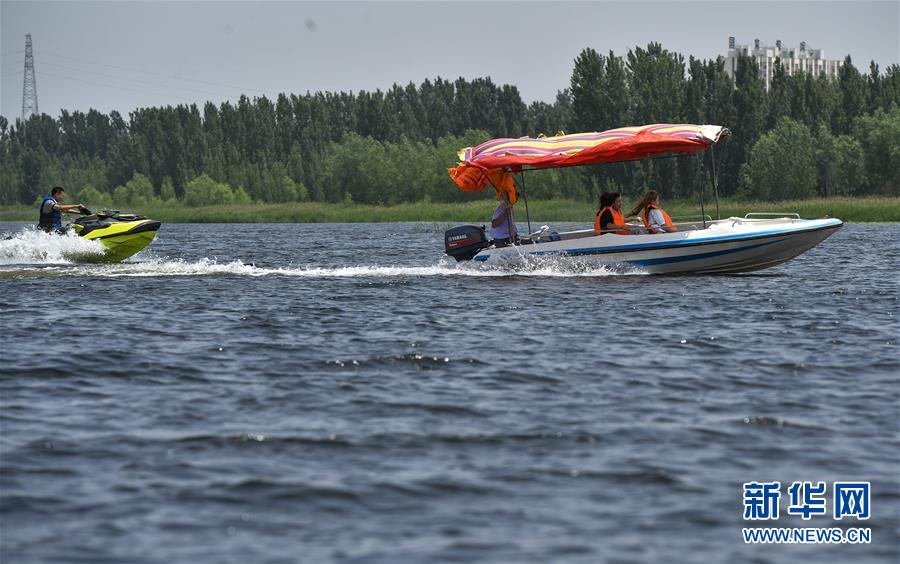 6月5日,游客在文安縣趙王新河濕地公園游覽。近年來(lái),河北省文安縣將植樹(shù)造林與城市建設(shè)有機(jī)融合,探索“政府引導(dǎo)、企業(yè)運(yùn)作、多方共贏(yíng)”的市場(chǎng)化植樹(shù)造林新模式,大規(guī)模推進(jìn)國(guó)土綠化,打造人與自然和諧共生的優(yōu)美生態(tài)環(huán)境,構(gòu)筑京津雄綠色屏障。截至目前,該縣森林覆蓋率已經(jīng)達(dá)到33%,城區(qū)綠地面積達(dá)到36.48%。新華社記者李曉果攝。