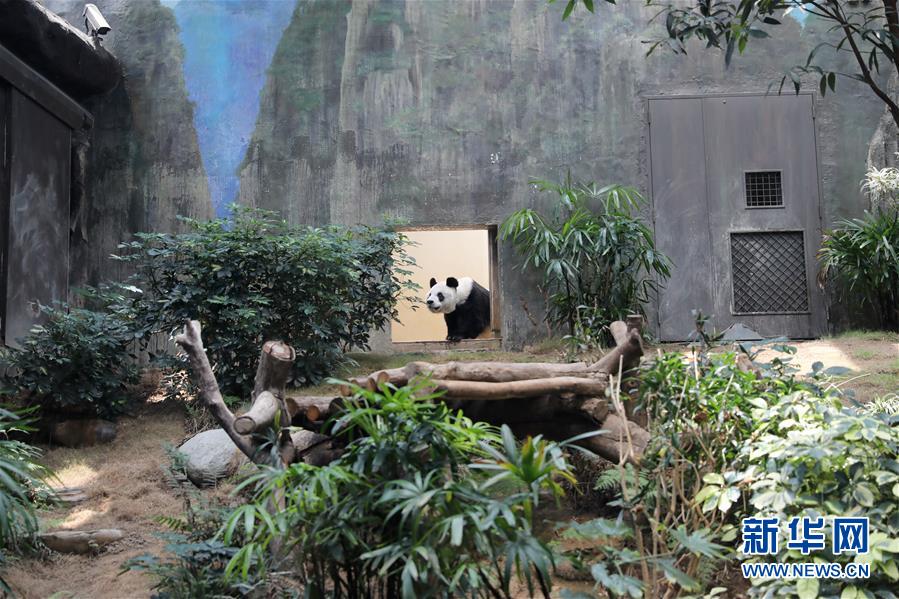 大熊貓“安安”來(lái)到香港海洋公園展區(qū)(5月11日攝)。新華社記者吳曉初攝