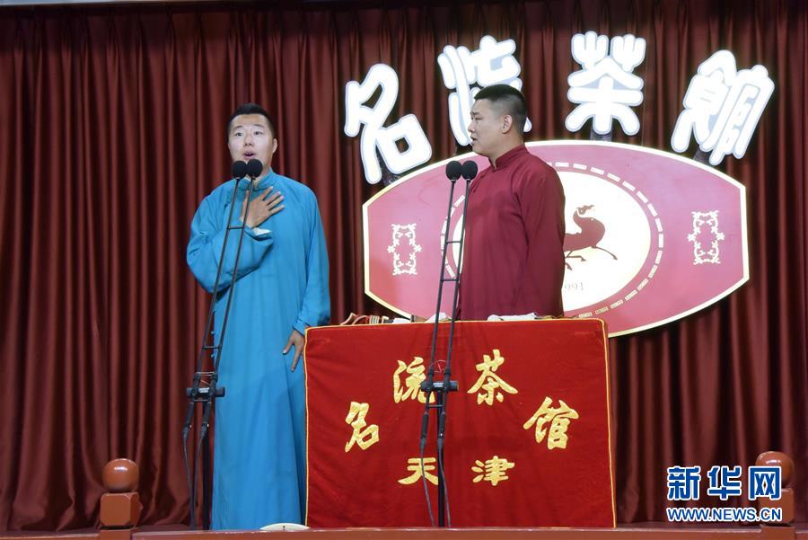 6月6日晚,天津名流茶館的相聲演員在付費(fèi)直播《名流名家“逗你玩”》演出中說相聲。隨著疫情防控形勢逐漸向好,天津的一些茶館紛紛轉(zhuǎn)戰(zhàn)“云端”說相聲,推出付費(fèi)直播演出,并邀請一些幸運(yùn)觀眾到現(xiàn)場觀看,在傳播津味相聲、培養(yǎng)年輕觀眾的同時,也為即將到來的線下演出“預(yù)熱”。新華社記者周潤健攝