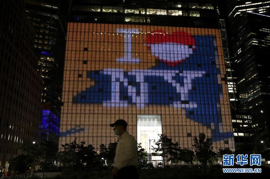 6月7日,美國紐約世貿(mào)中心一號(hào)樓外墻呈現(xiàn)出“我愛紐約”字樣。當(dāng)日,紐約州多處建筑點(diǎn)亮藍(lán)色和金色燈光,及用燈光效果呈現(xiàn)出“紐約堅(jiān)強(qiáng)”、“我愛紐約”等字樣,致敬紐約民眾團(tuán)結(jié)抗擊疫情。新華社記者王迎攝