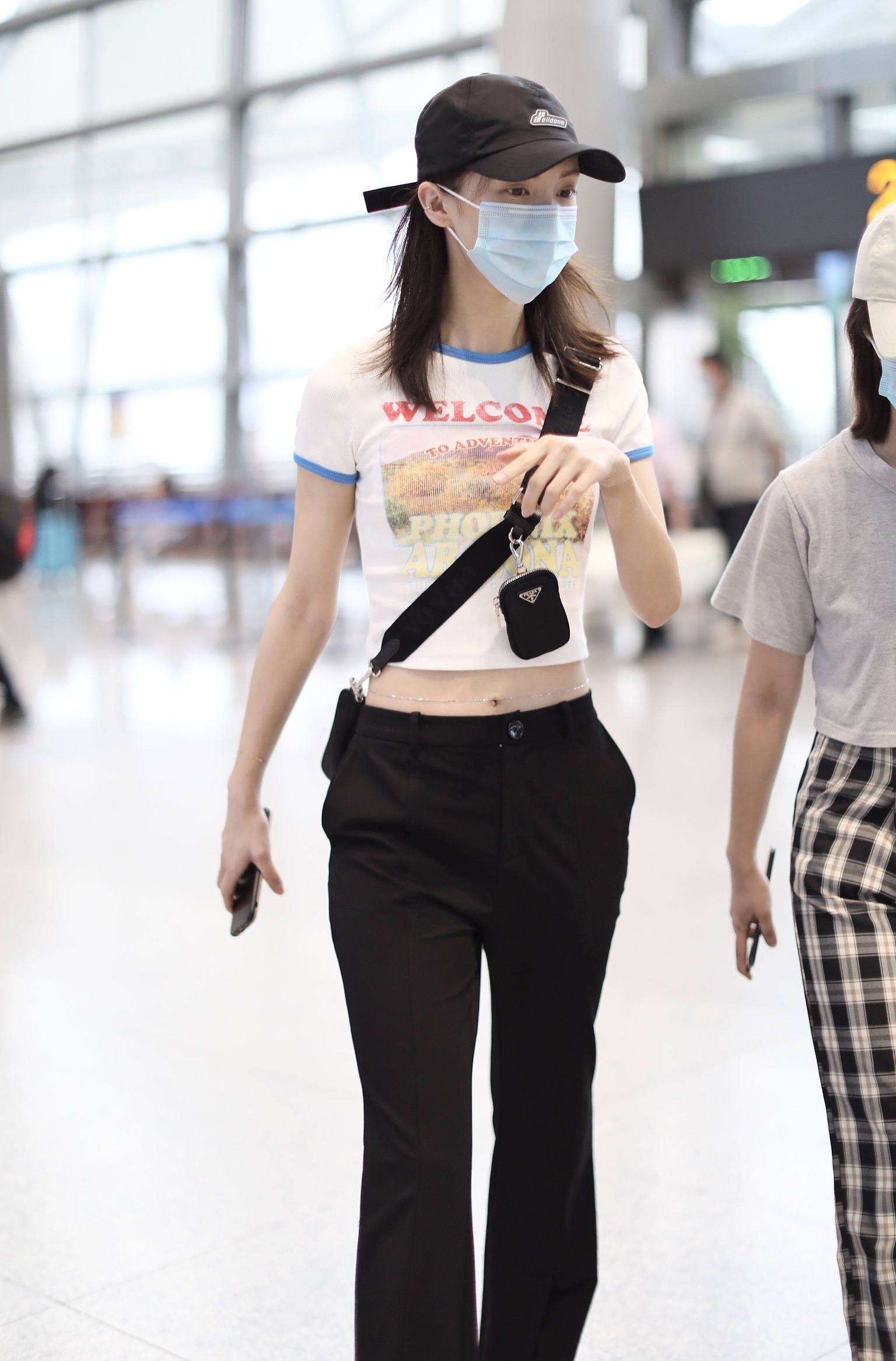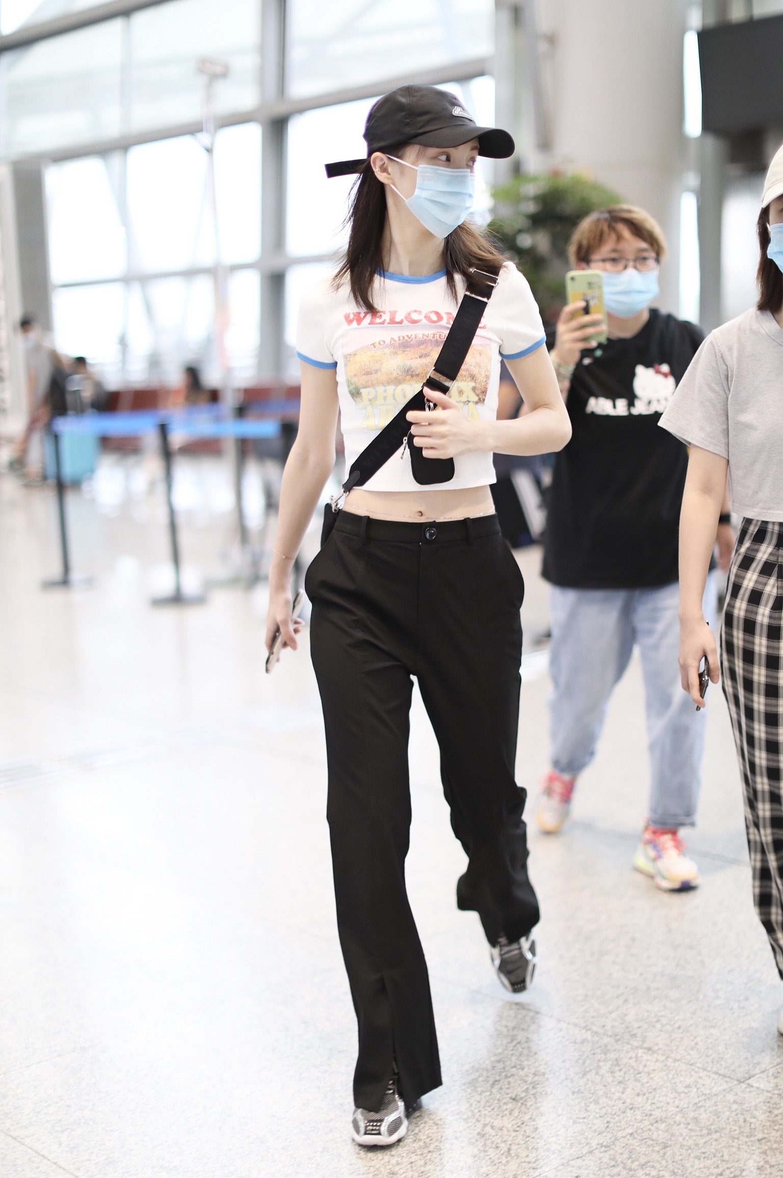 2020年6月9日,湖南長沙,金晨現(xiàn)身機(jī)場。大清早出現(xiàn)的她狀態(tài)不錯(cuò),戴著棒球帽身著超短白T,大秀水蛇腰及腰鏈,一路心情超好,更不時(shí)笑成月牙眼!
