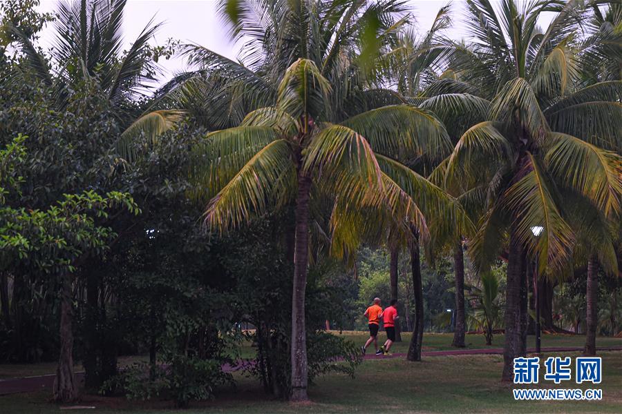市民在??谌f綠園夜跑(5月28日拍攝)。近年來,夜跑成為越來越多都市人熱衷的健身方式之一。在海南???,每當(dāng)夜幕降臨,“夜跑族”來到??谌f綠園、世紀(jì)公園等夜跑場所跑步,用一身酣暢淋漓的汗水?dāng)[脫白天工作中的壓力,享受跑步帶來的歡愉。新華社記者 蒲曉旭 攝