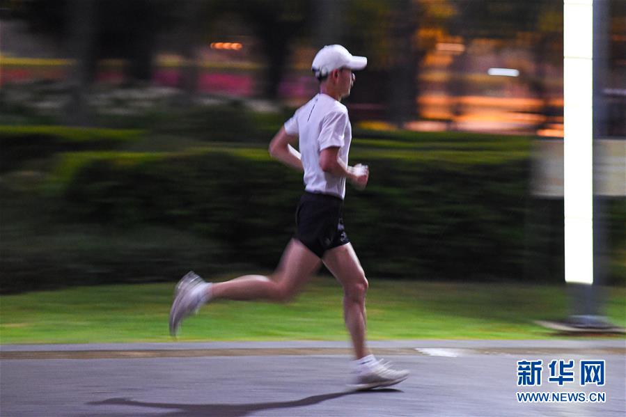 一位市民在海口萬綠園夜跑(5月28日拍攝)。近年來,夜跑成為越來越多都市人熱衷的健身方式之一。在海南海口,每當(dāng)夜幕降臨,“夜跑族”來到海口萬綠園、世紀(jì)公園等夜跑場(chǎng)所跑步,用一身酣暢淋漓的汗水?dāng)[脫白天工作中的壓力,享受跑步帶來的歡愉。新華社記者 蒲曉旭 攝