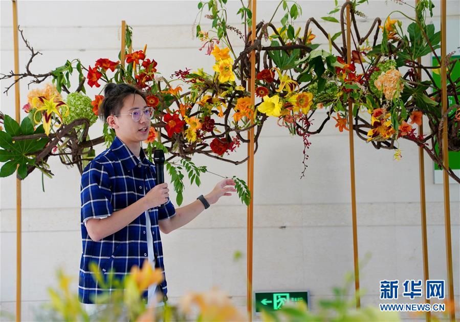 6月13日,第45屆世界技能大賽花藝項(xiàng)目冠軍、上海應(yīng)用技術(shù)大學(xué)學(xué)生陸亦煒在介紹自己主持設(shè)計(jì)和創(chuàng)作的花藝作品。當(dāng)日,“2020中國(上海)萱草文化節(jié)”在上海應(yīng)用技術(shù)大學(xué)開幕,校園里數(shù)百個(gè)品種的萱草花競相綻放,萱草科研推廣、萱草文化交流等多項(xiàng)活動(dòng)同時(shí)舉行。新華社記者 劉穎 攝
