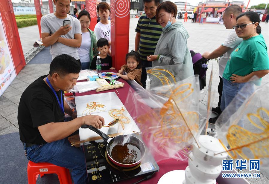 6月13日,非遺傳承人在非遺大集上制作糖畫。新華社記者 季春鵬 攝
