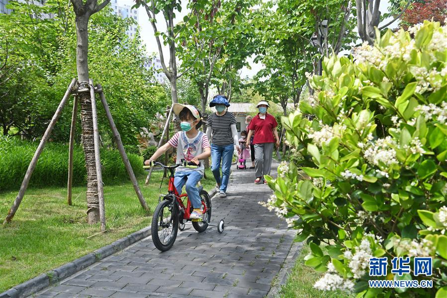 6月11日,市民在新建成的市北區(qū)“昌樂園”游玩。近年來,青島市市北區(qū)充分利用道路節(jié)點(diǎn)、棚改騰空土地、零星地塊,見縫插“綠”,陸續(xù)打造了100余處口袋公園,為市民創(chuàng)造良好的人居環(huán)境。新華社記者 李紫恒 攝
