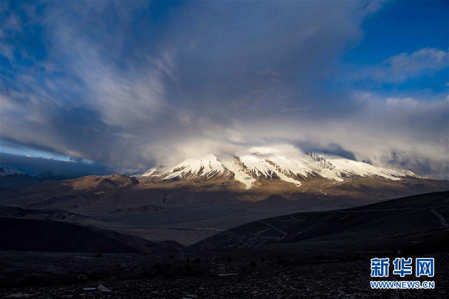帕米爾高原上,夕陽(yáng)下的慕士塔格峰(6月15日攝)。新華社記者 胡虎虎 攝