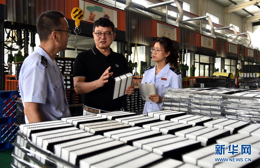 6月15日,稅務(wù)工作人員在河北省邢臺(tái)市威縣一家汽車配件生產(chǎn)企業(yè)調(diào)研稅費(fèi)政策落實(shí)情況。新冠肺炎疫情發(fā)生以來(lái),國(guó)家稅務(wù)總局威縣稅務(wù)局實(shí)施“一企一策”精準(zhǔn)輔導(dǎo),組建稅收服務(wù)小分隊(duì),主動(dòng)上門對(duì)接納稅企業(yè),解讀疫情期間稅費(fèi)優(yōu)惠相關(guān)政策,確保政策落實(shí)“一戶不少、應(yīng)享盡享”,為企業(yè)提供助力。新華社記者 朱旭東 攝