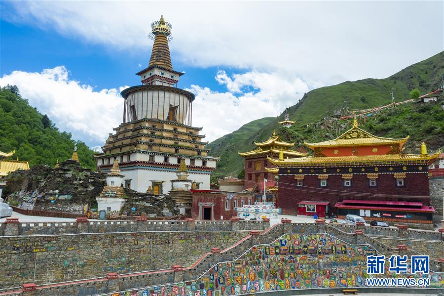 四川省阿壩藏族羌族自治州壤塘縣棒托石刻公園(6月13日攝,無人機(jī)照片)。新華社記者 沈伯韓 攝