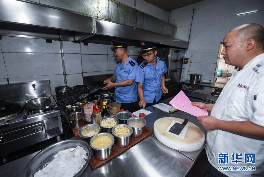 6月17日,市場監(jiān)管執(zhí)法人員在東林鎮(zhèn)一家農(nóng)家樂內(nèi)開展專項(xiàng)執(zhí)法行動(dòng),檢查是否存在非法經(jīng)營和加工野生動(dòng)物的情況。新華社記者 徐昱 攝